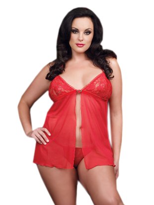 Plus Size Red Lace Babydoll Flyaway Open Front Sexy Lingerie Feature