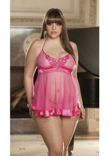 Sheer Net And Charmeuse Plus Size Babydoll (Pink;1X) Reviews